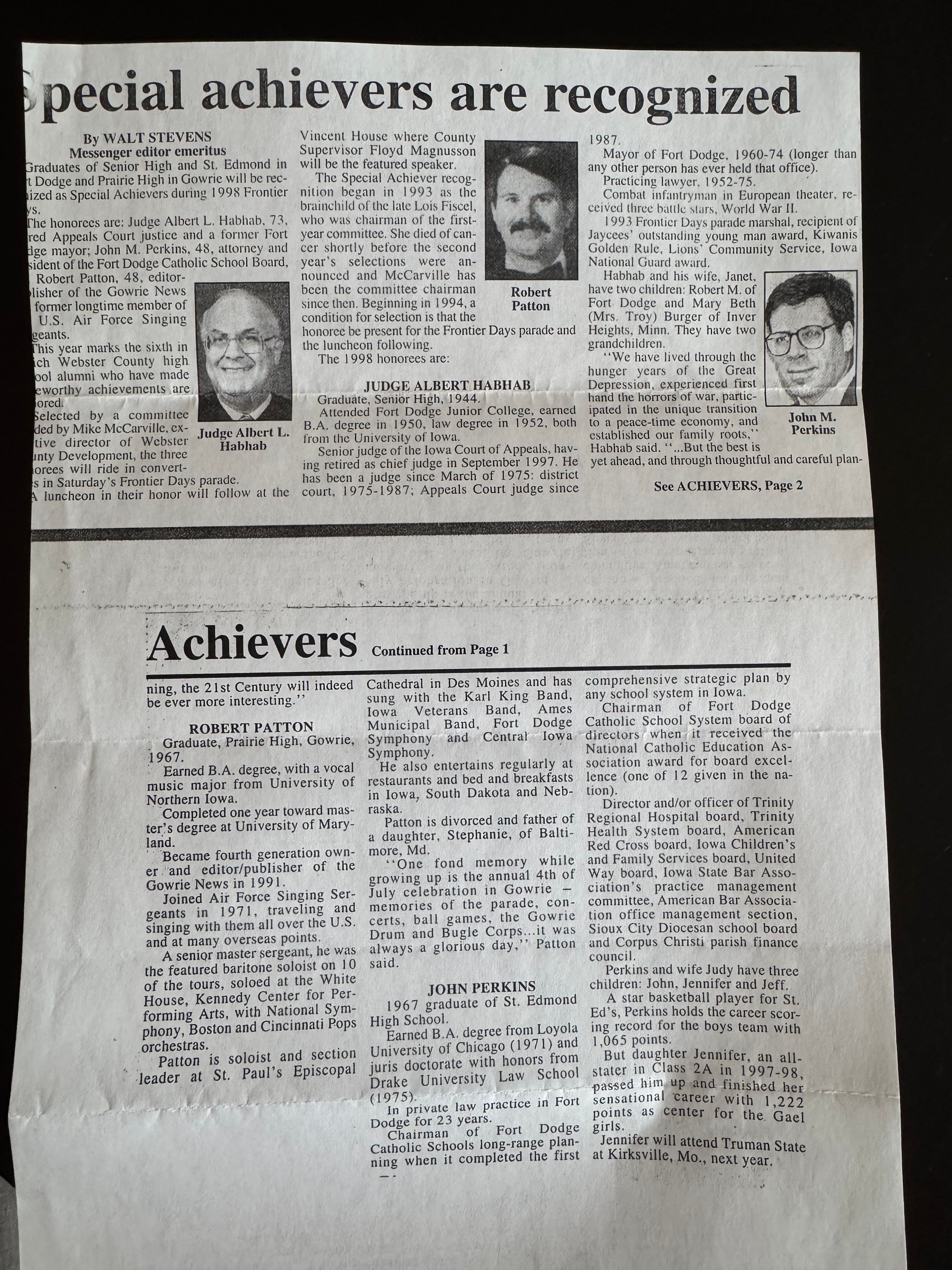 John routinely made it into his hometown newspaper, initially for being a standout high school student and athlete and later in life for being an exemplary leader and pillar to his community.